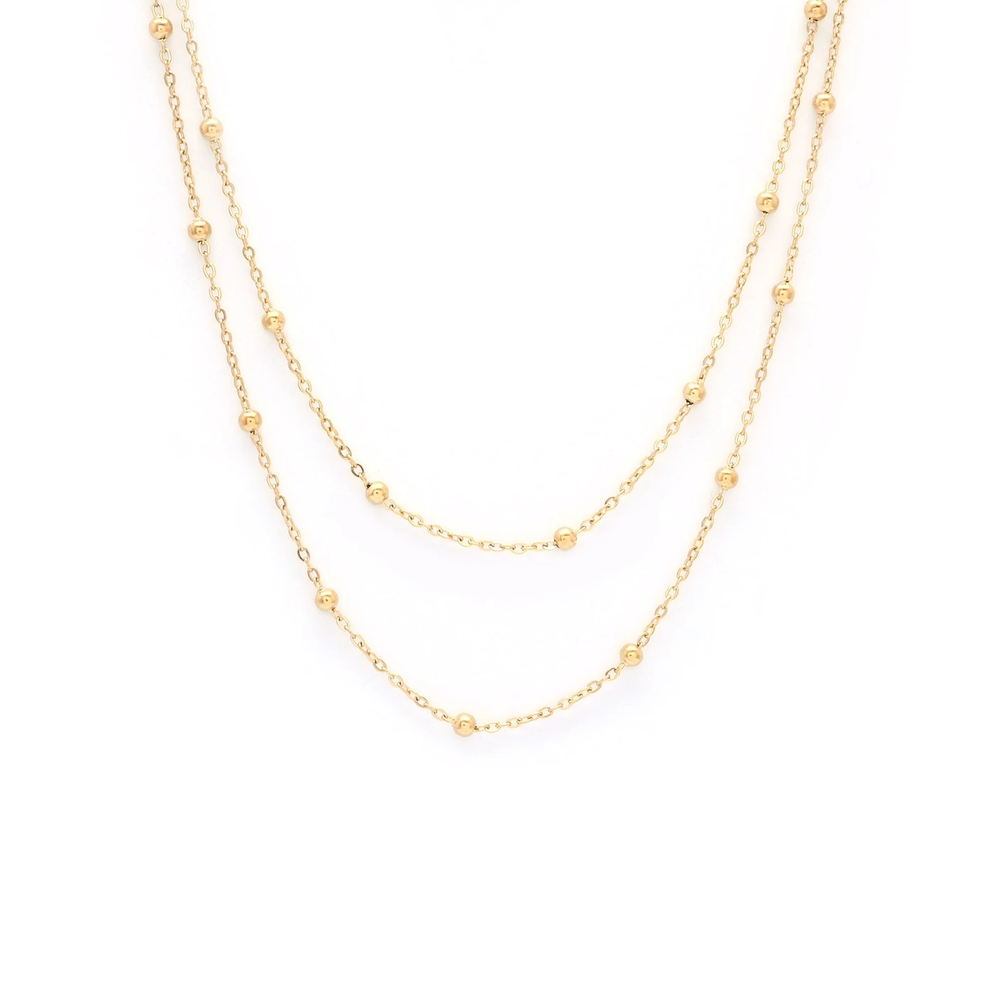 Colar em aço malha dupla com bolinhas (Cor: Dourado)