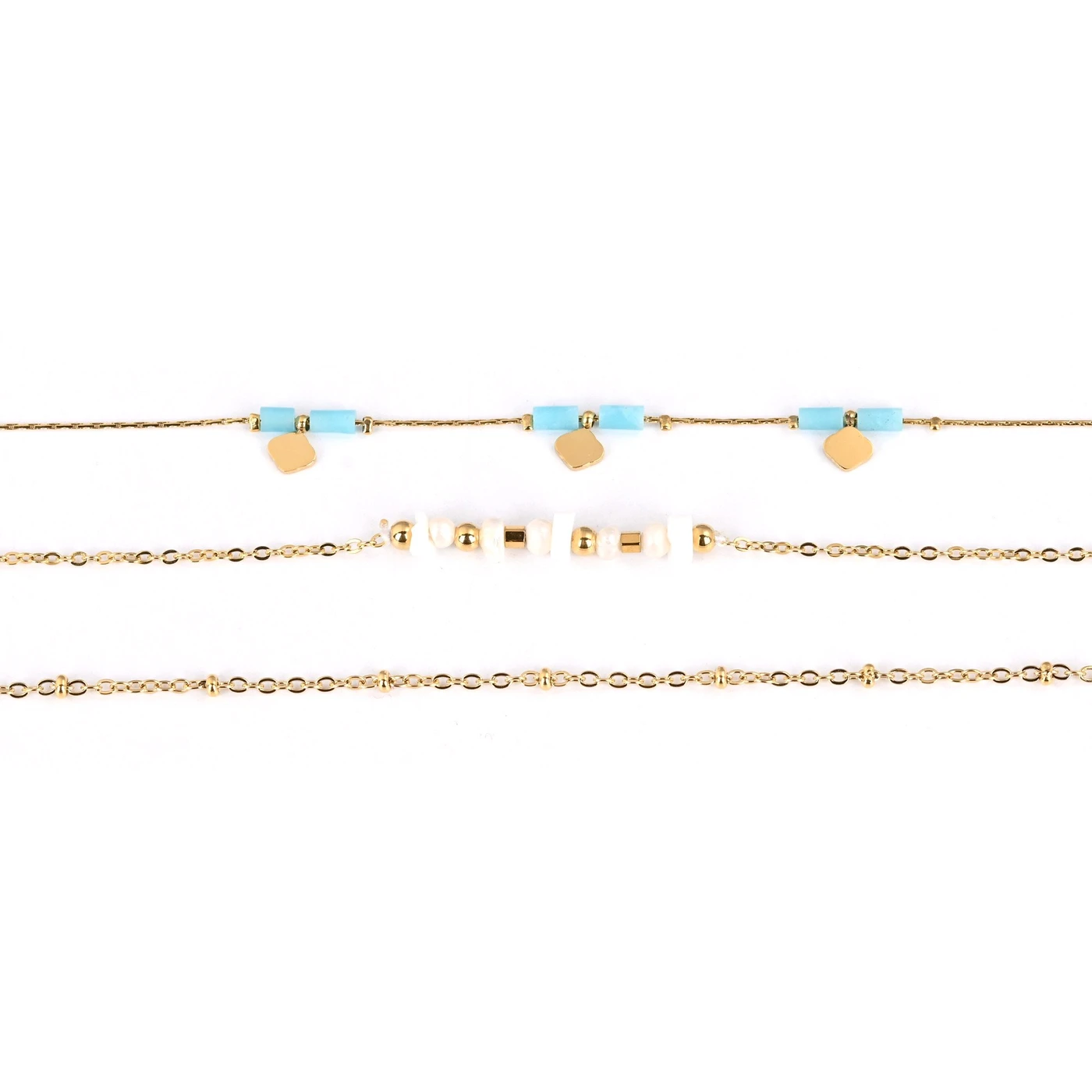 Conjunto pulseiras em aço pendentes