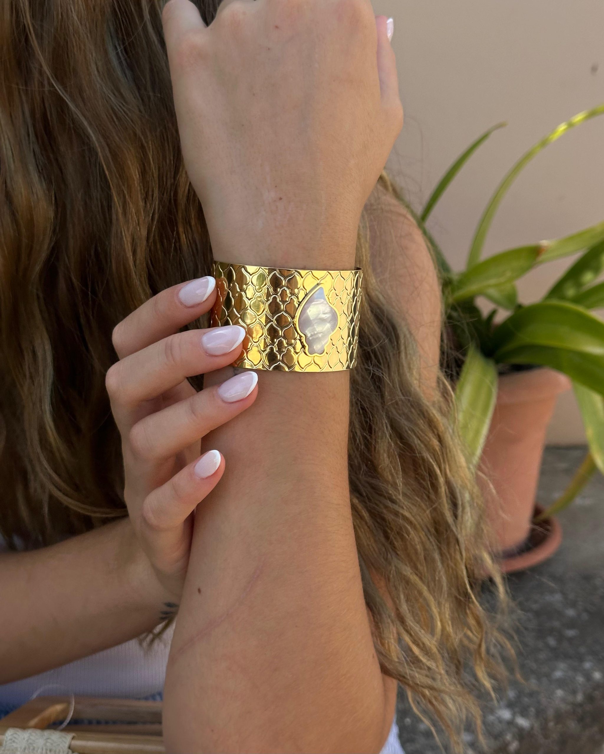 Pulseira rígida aço com flor